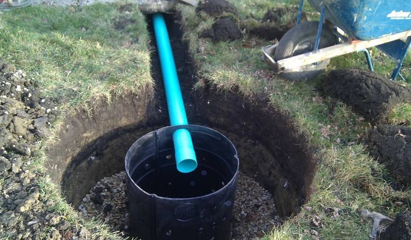 Обычно для душа с подогревом водоотвод делают на даче, используя покрышки и дренажную яму. Предварительно выкапывают канаву, укладывают дренажный слой из щебня или песка, монтируют трубопровод. Планируя напольное покрытие, для хорошего стока стоит предусмотреть угол наклона. По мере заполнения чистят сливную яму.