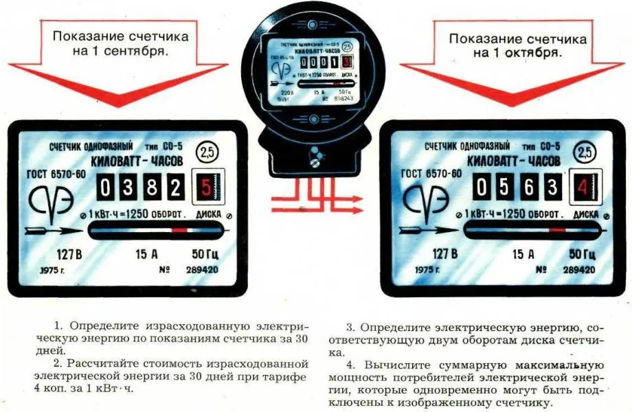 Расход электроэнергии вычисляется простым вычитанием показателя за прошлый месяц из текущего показателя.