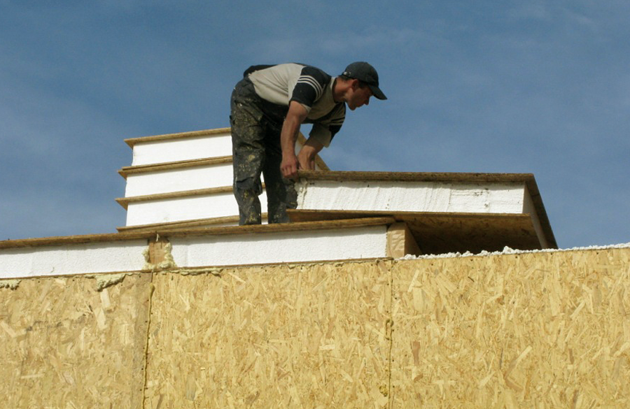 Благодаря канадской технологии можно еще больше сократить срок постройки дома. Происходит это благодаря готовым СИП панелям, изготавливаемым на заводе. Внутри (и снаружи) них уже размещаются все необходимые изоляционные и облицовочные материалы, так что остается только установить стены на фундамент здания.