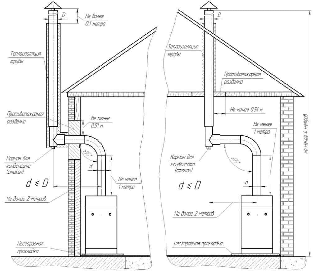 Для частного дома расчёт высоты дымохода основывается на определённых правилах: