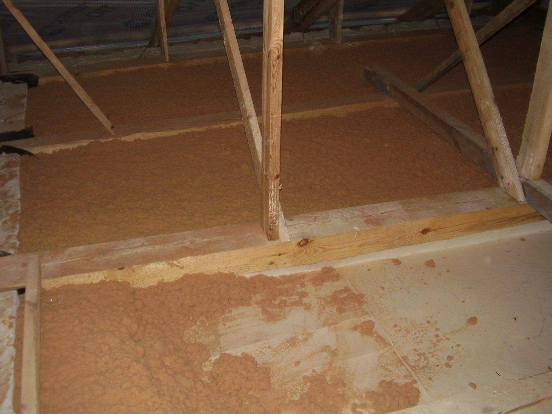 Чтобы снизить весовую нагрузку, рекомендуется добавлять в глину опилки, нарезанный камыш. Однако удельный вес состава все равно будет значительным, поэтому в строениях с ветхими перекрытиями утеплитель применять нельзя.