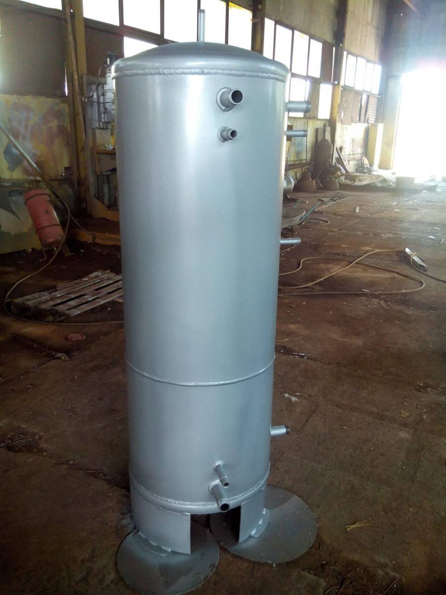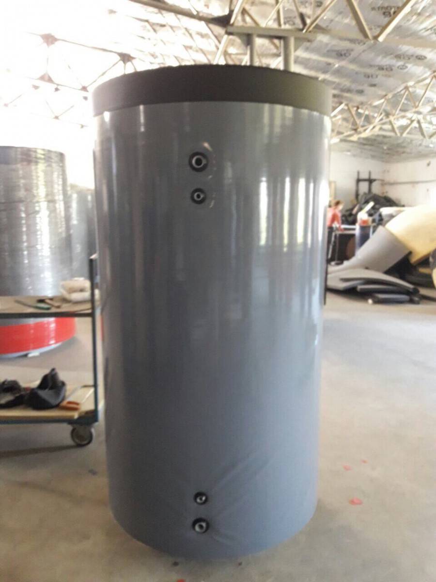 Оптимальным накопителем для сохранения разогретого теплоносителя будет цилиндрическая ёмкость с выпуклыми днищами. Такая форма позволяет хранить довольно большой объём воды. Такие ёмкости можно изготовить только в заводских условиях.