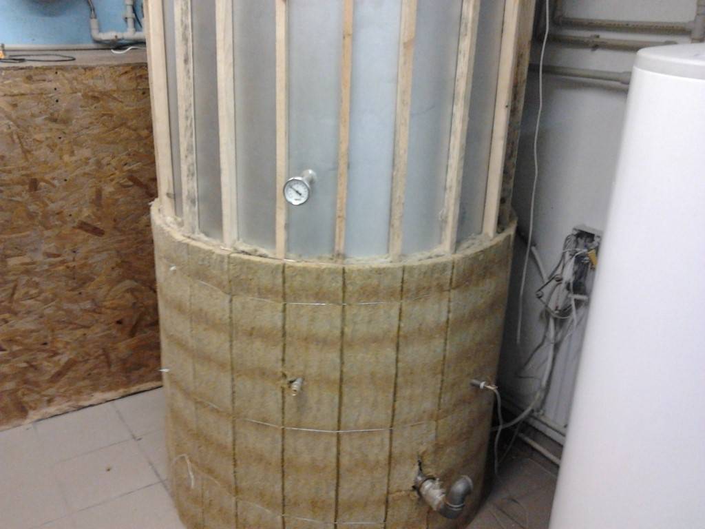 - Если ваш бюджет позволяет, то вместо минеральной ваты можно использовать пенополиуретан. Он дороже, но гораздо более эффективно будет сохранять тепло воды.