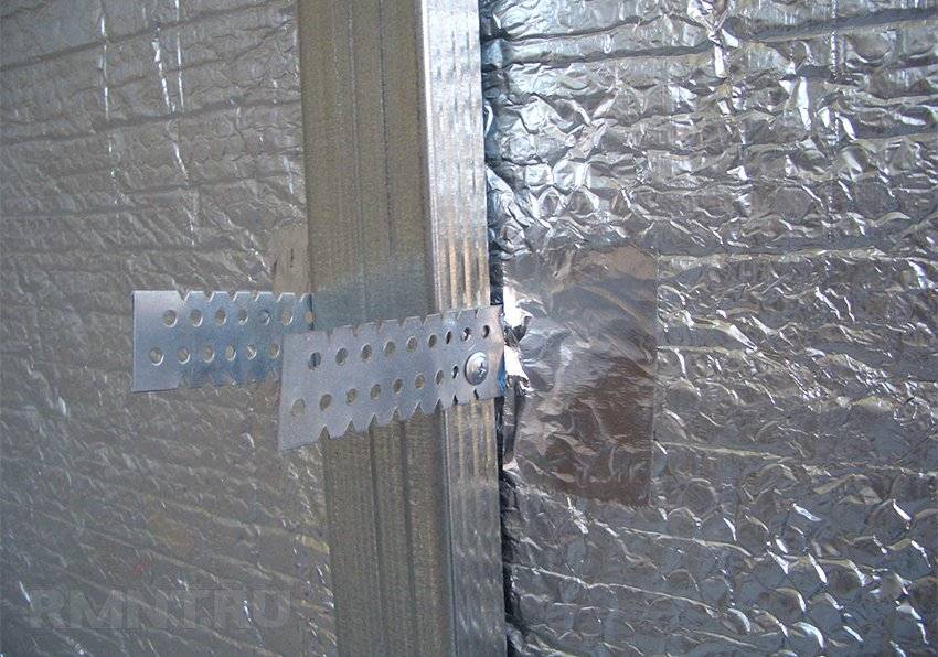 Для внутреннего утепления стен этим материалом необходим деревянный каркас, который позволяет с максимальным эффектом использовать все его свойства. В связи с тем, что пенофол имеет фольгированное покрытие, которое обладает высокой электропроводностью, необходимо проверить изоляцию кабелей, проходящих по стене, во избежание короткого замыкания. При необходимости их можно протянуть в защитном гофрированном рукаве.