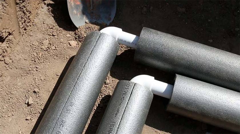 Прокладку трубопровода под землёй производят ниже отметки промерзания грунта, и для утепления труб не используют водопроницаемые материалы (минеральную вату), которые при подтоплении могут пропитаться водой и утратят изолирующие свойства.