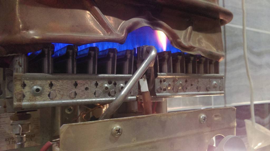 Когда теплоноситель нагревается до нужного уровня, подача газа приостанавливается. Вспомогательная горелка продолжает работать, а основная — гаснет.