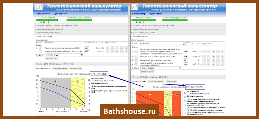 Вводимая информация обычно включает материал, по которому рассчитывается значение, и его толщину. Однако эта информация должна быть введена как для внутренней, так и для внешней стороны. Затем программа выведет таблицу со следующими данными: