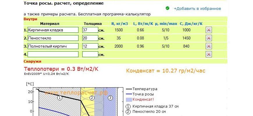 Средняя температура воздуха. Следует указать приблизительную температуру снаружи и внутри помещения. Эти показатели также влияют на конечный результат расчета. Тип номера. Уровень влажности, например, в ванной комнате должен быть очень высоким, в то время как в гостиной он не должен превышать 70%. Географическое положение. Климат в разных регионах страны сильно отличается. Исходя из этого, можно сделать вывод, что нормальная точка росы для исследуемых не одинакова. Следует учитывать, что где-то на улице уровень влажности будет еще выше. Слои материала. Эта линия указывает на то, что находится за основным вспомогательным материалом