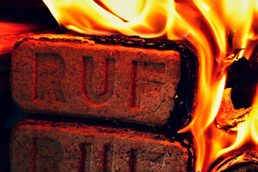 Евродрова RUF сходны по преимуществам с предыдущим типом. Различие лишь во времени использования. После того как брикеты «РУФ» прогорают, они тлеют более долгое время, что делает их незаменимыми для поддержания тепла в помещении в ночное время суток.
