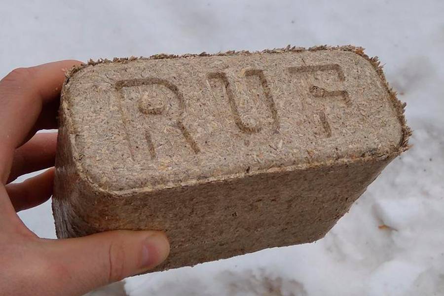 - Топливные брикеты РУФ. Они создаются по технологии, которая уже была описана: прессованная щепа и опил, скрепляются воедино натуральным клеящим составом. Евродрова RUF имеют прямоугольную форму. Это отличное решение, потому как стоит такое топливо дешево, но стоимость на качестве абсолютно не отражается.