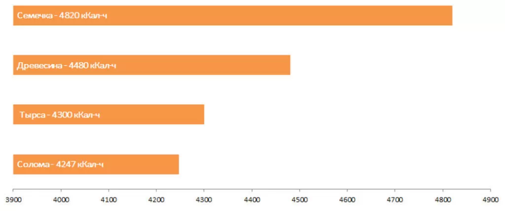 На основе данных проведенных исследований была установлена калорийность каждой разновидности. Наибольшей энергетической продуктивностью отличаются топливные брикеты из лузги подсолнечника. Отзывы экспертов дают понять, что они содержат масла. Это значительно засоряет оборудование при эксплуатации. Однако благодаря хорошей теплотворной способности в последнее время набирает популярность именно это топливо.