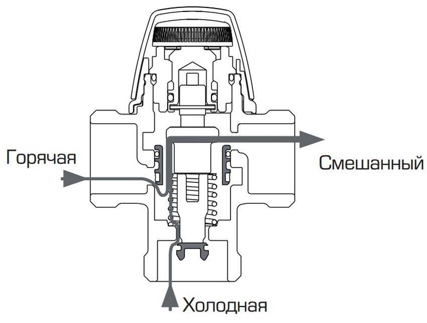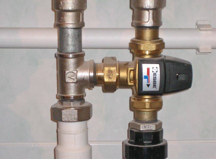 Принцип работы устройства виден из его названия. Конструкция смесительного устройства имеет два выхода и входа. Это нужно для того чтобы смешивать разные потоки жидкости для снижения ее температуры. Кстати, это является наиболее оптимальным вариантом для того чтобы устанавливать необходимый режим для «теплого пола».