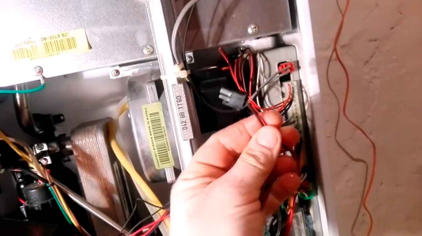 Проверить соединения. К вентилятору котла Навьен подходит два провода. Обрыв, замыкание, ненадежный контакт – и ошибка 09 гарантирована.