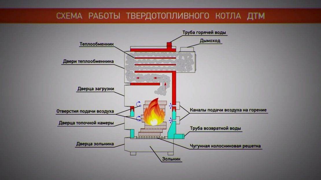 - Такой котел на твердом топливе не только нагревает теплоноситель, но и сам работает по принципу печки, обогревая котельную.