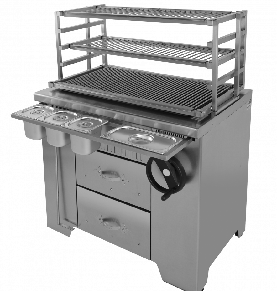 Для удобства приготовления пищи такие устройства модернизируют, пристраивая к ним дополнительные отсеки и установки. Приобрела большую популярность конструкция, совмещающая в себе печь-барбекю, жаровню с возможностью установки казана, а также пристройку с мойкой. Следует отметить, что жаровню легко превратить в обычную плиту, если убрать казан, а на отверстие положить чугунные кольца разных размеров, образующих сплошную поверхность.