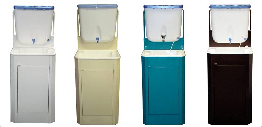 «Мойдодыр». Они довольно компактные и их легко транспортировать благодаря удобному корпусу, который без проблем разбирается. Установка тоже не займёт много сил и энергии. Тумбы, как правило, изготавливаются из прочного металла. Раковина и ёмкость для воды могут производиться как из пластика, так и из металла. Это зависит от модели. В основном установлены нагреватели воды мощностью в 1,25 кВт. Они быстро нагревают воду. Стандартная комплектация выглядит следующим образом: вес — 15 кг, объём ёмкости для хранения воды — от 15 до 30 л, нагреватель отключается при достижении температуры в 60˚С, цена бывает разная — в пределах 2 тысяч рублей.