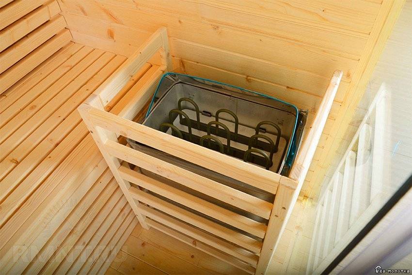 Далеко не все современные каменки имеют в комплекте теплоотражающий экран. Поскольку верхняя часть печи может разогреваться до 200–250 °С, ее установка ближе 35 см от стен не может считаться безопасной. В любом случае от интенсивного теплового излучения деревянная отделка будет сильно усыхать и потеряет в долговечности.