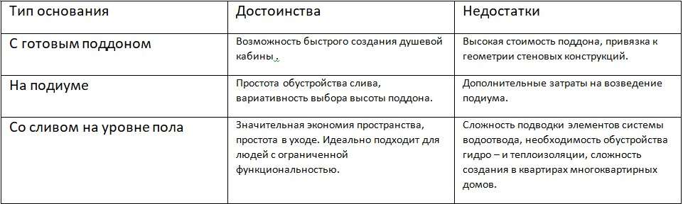 Душевые поддоны классифицируют по форме, высоте и материалам изготовления. Конструктивно они подразделяются на: