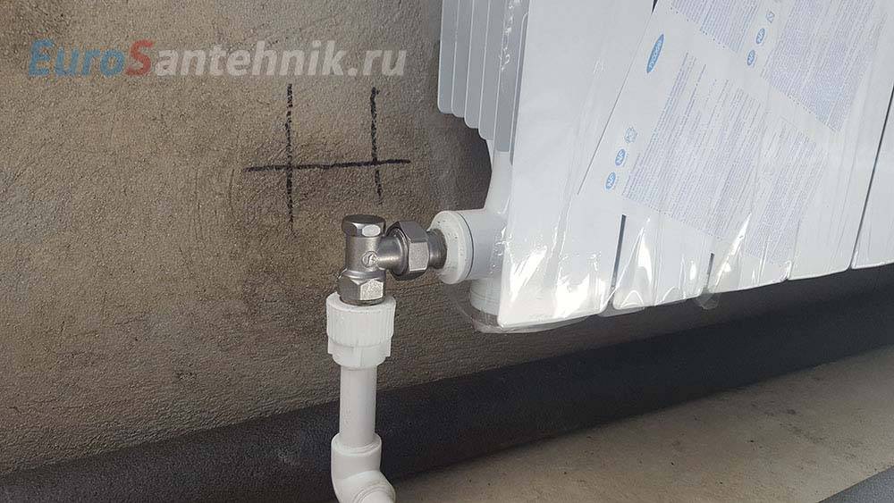 Концепция автономного обогрева подразумевает установку на подаче терморегуляторного узла. Краны и фурнитура к отопительному прибору через «американку». Способ соединения с подводом зависит от материала труб.