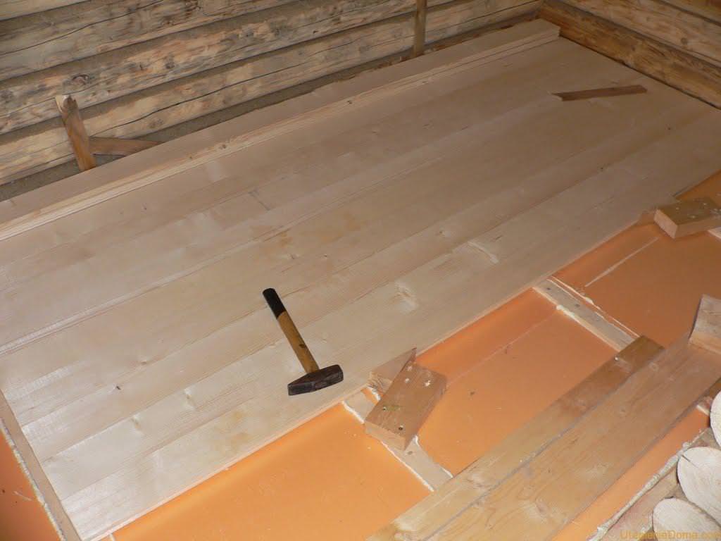 Когда будет полностью покрыта вся поверхность деревянного настила, приступают к установке половых досок, их прибивают непосредственно к деревянным лагам