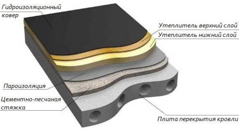 - Теплоизоляцией и слоем гидроизоляции;