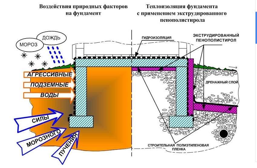 Рисунок 5. Схема правильно теплоизоляции фундамента экструдированным пенополистиролом