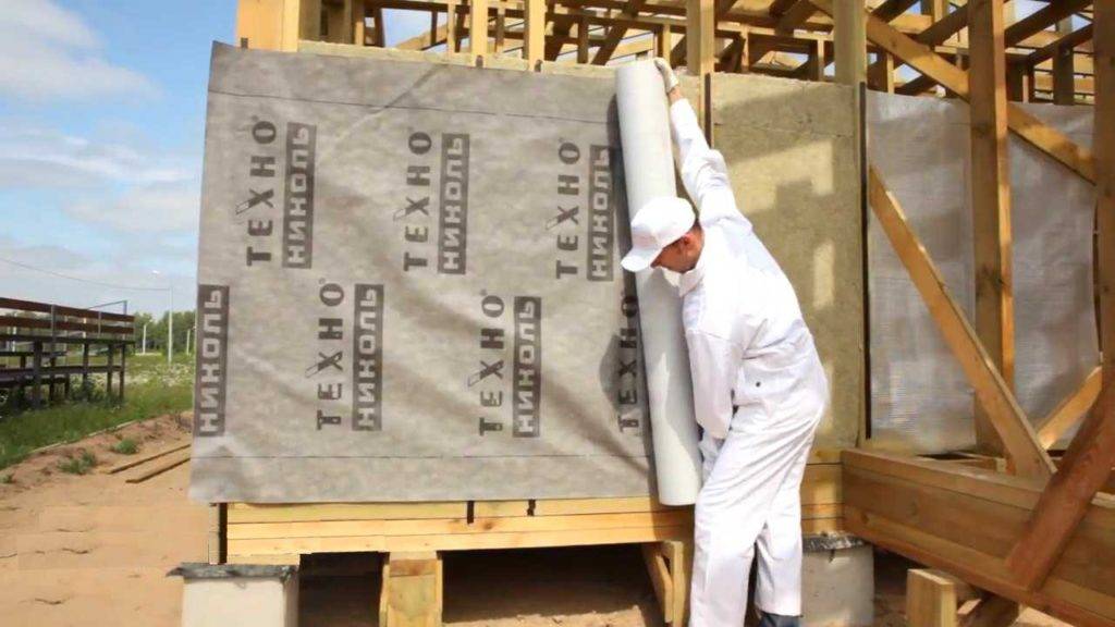 В качестве материала используется гидро-ветрозащитная мембрана, она надежно защитит стены от попадания внутрь сквозняков и капель дождя. Для надежного соединения мембраны, зафиксируйте её к стойкам контр-обрешеткой.