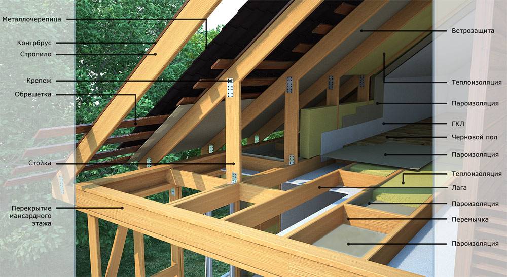 - обшивка потолочных балок со стороны чердака или мансарды.