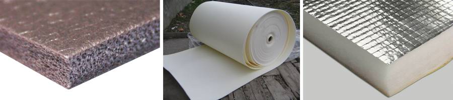 - Те же разновидности, но с добавлением одного или двух слоев фольгированного покрытия (тонкого алюминия или армированной металлизированной пленки). Отражающий внешний слой крепится к ППЭ в процессе ламинирования, качество сцепления с утеплителем высокое. Эти марки рекомендуют купить для монтажа в помещениях с повышенной влажностью и при необходимости отражения теплового излучения обратно в комнату.
