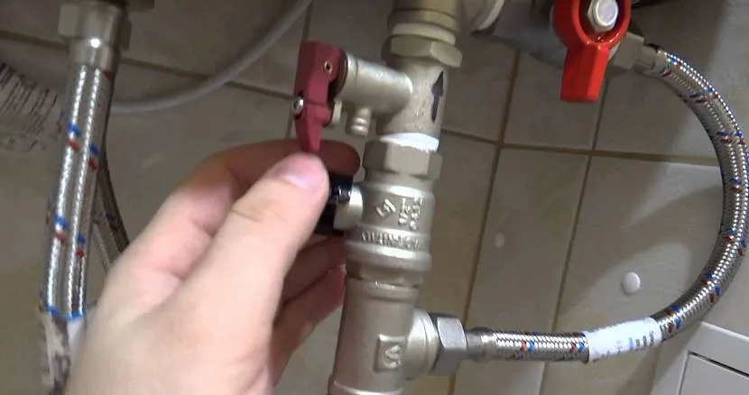 - Затем потребуется перекрыть магистрали подачи воды к агрегату. Вентиль водоразбора, напротив, открывается на полную мощность.