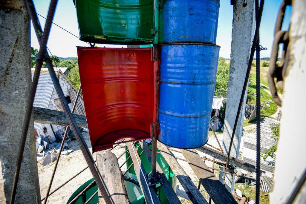 Высотные показатели мачты должны составлять около 6-12 метров. Под основание мачты заливается опалубка, а затем бетонируется. К верхней части крепим винт, который можно изготовить из труб ПВХ диаметром 160 мм и длинной не менее 2 метров. Из нее вырезаем шесть двухметровых пластин. Фиксируем полученный финт на верху мачты. Саму мачту укрепляем с помощью тросов, прибитых с одной стороны к земле, а с другой – к телу конструкции.