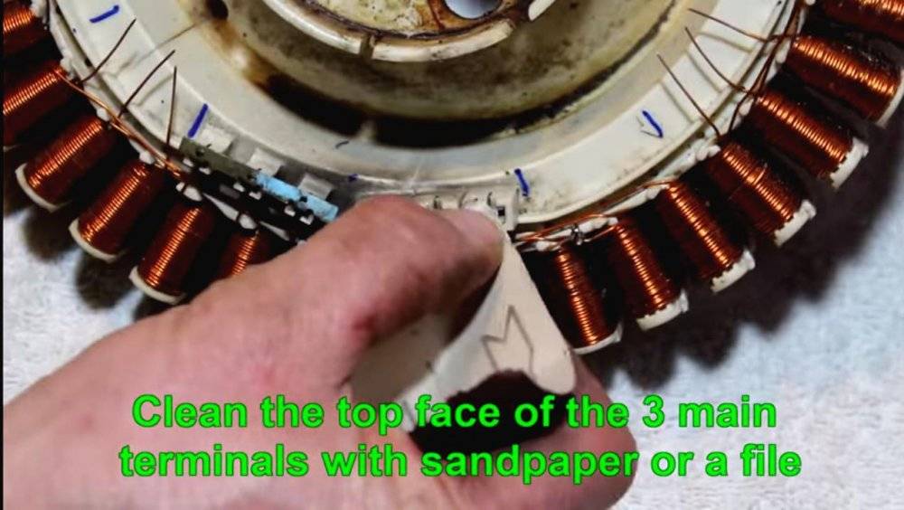 Зачищаем контактную группу, использующуюся для подачи питания двигателю.