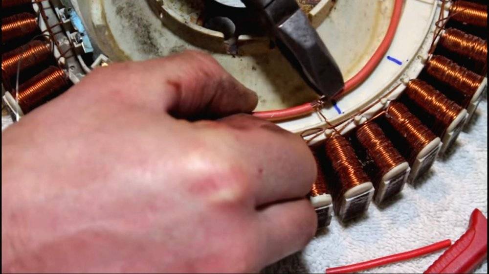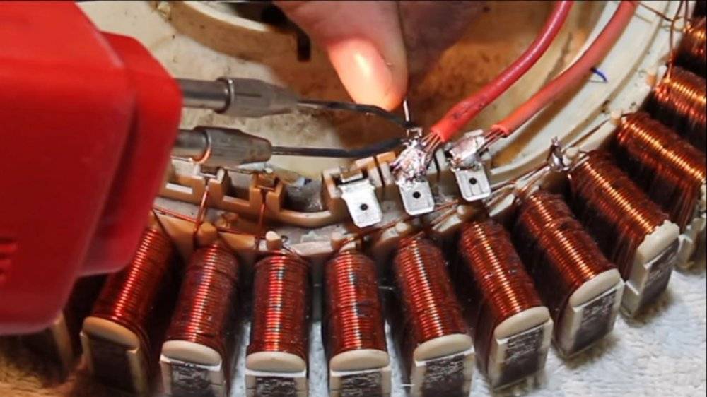 Размещаем платформу двигателя на столе, и приступаем к работе. Наша цель – перепаять соединения фаз по другой схеме, отличной от оригинала (фото).