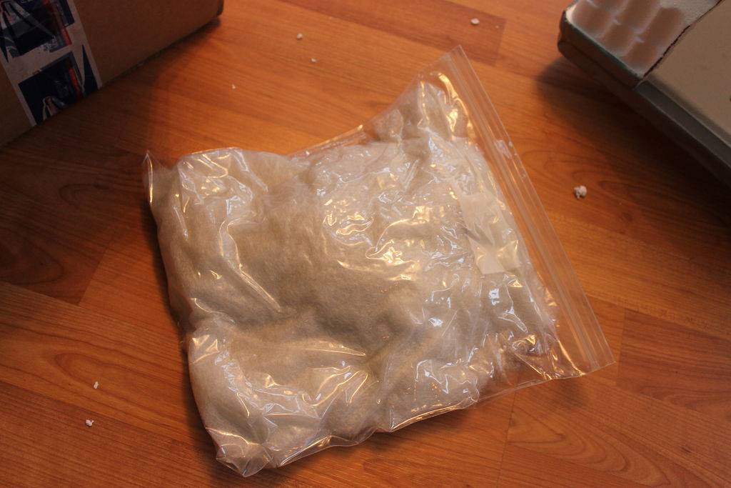 - Поместите внутрь пакета вату или другой утеплитель (я использовал пакет объемом 4л). Фото 1