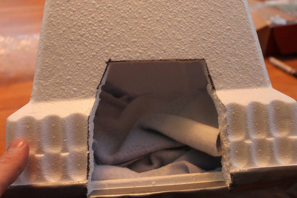 Если кот может просунуть свою морду, значит сможет просунуть и остальное тело (если он конечно не толстяк), поэтому я решил не делать вход слишком большим, кроме того это поможет избежать лишней потери тепла.